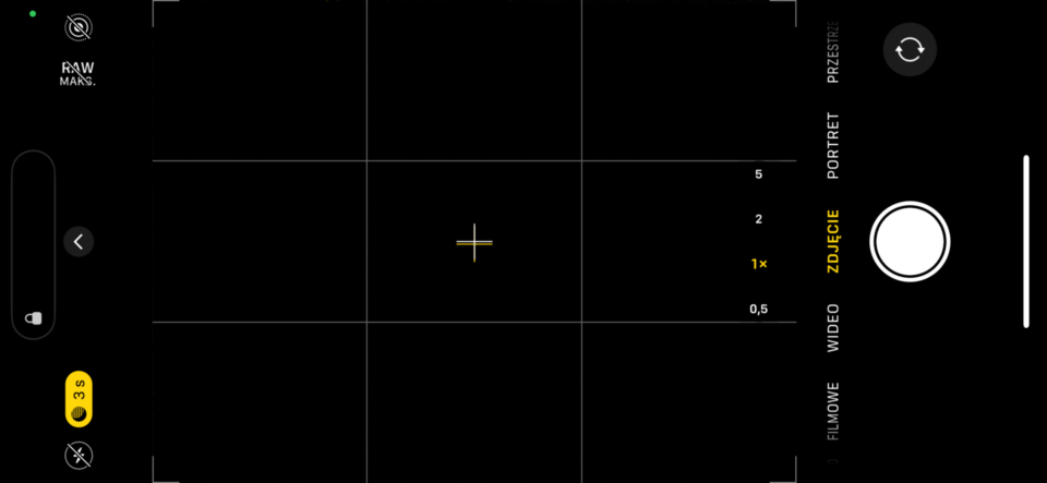 Możesz kliknąć tę ikonę, aby dostosować czas ekspozycji. Suwak pozwala na wydłużenie czasu naświetlania, co może poprawić jasność i szczegóły zdjęcia. Domyślnie iPhone sam dobiera czas naświetlania, ale możesz go zmienić, przesuwając suwak nad przyciskiem migawki.