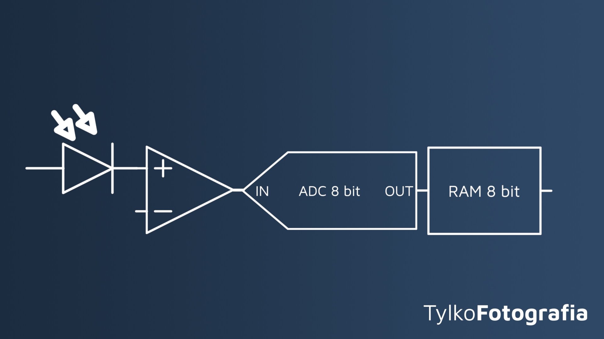 Tak przetworzony sygnał analogowy trafia do przetwornika analogowo cyfrowego który jest odpowiedzialny za zmianę wartości napięcia na wartość liczbową. Przetwornik A/C jest ostatnim elementem który może wpłynąć na jakość rejestrowanego obrazu, jego szybkość działania z kolei wpływa wprost na minimalny czas otwarcia migawki jaki możemy uzyskać w aparacie cyfrowym. W tym miejscu warto dodać że elementy analogowe wymienione wcześniej (fotodioda i wzmacniacz).