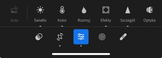 Lightroom ikona narzędzia autokorekta – pierwsza lewej